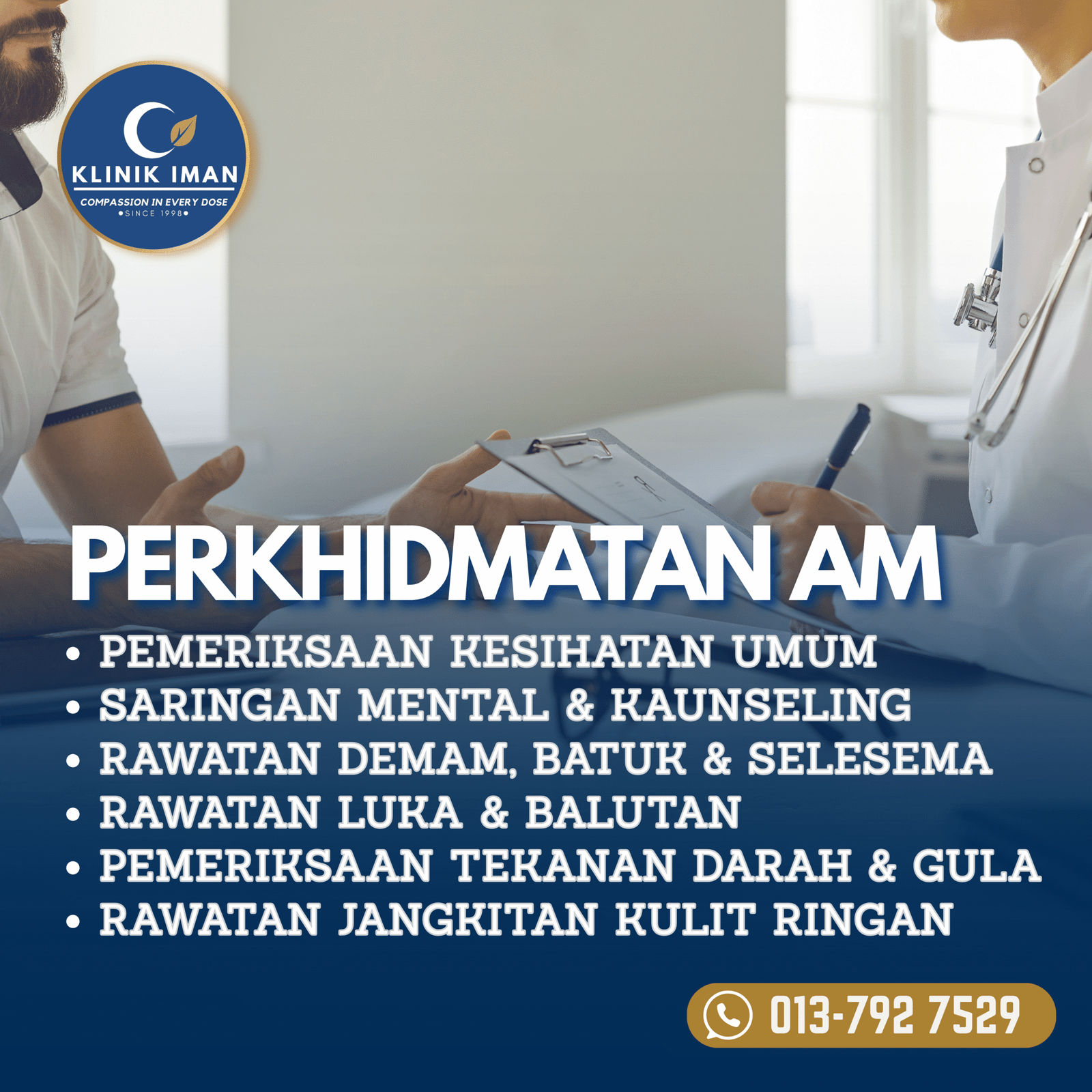 At Klinik Iman Seremban, we believe healthcare should be personal, affordable, and accessible. For over 25 years, we’ve been providing comprehensive medical services for families — from general consultations to antenatal care, vaccinations, health screenings, and chronic disease management. Our experienced team is dedicated to keeping you and your loved ones healthy.